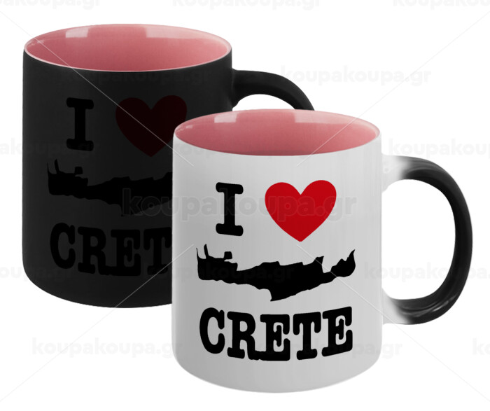 I Love Crete, Κούπα Μαγική εσωτερικό ΡΟΖ, κεραμική 330ml που αλλάζει χρώμα με το ζεστό ρόφημα