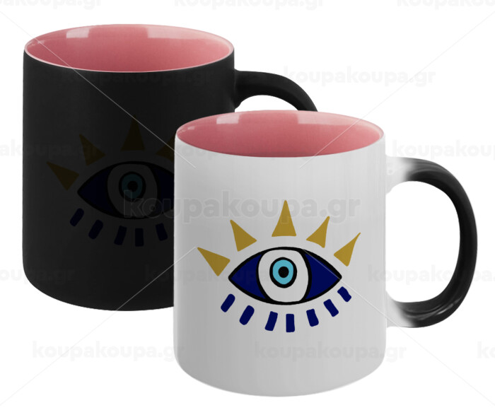 blue evil eye, Κούπα Μαγική εσωτερικό ΡΟΖ, κεραμική 330ml που αλλάζει χρώμα με το ζεστό ρόφημα