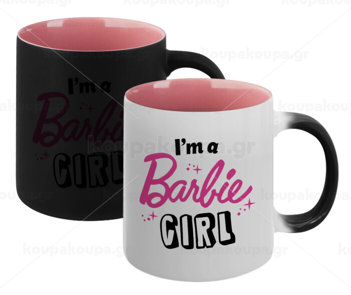 I'm Barbie girl, Κούπα Μαγική εσωτερικό ΡΟΖ, κεραμική 330ml που αλλάζει χρώμα με το ζεστό ρόφημα