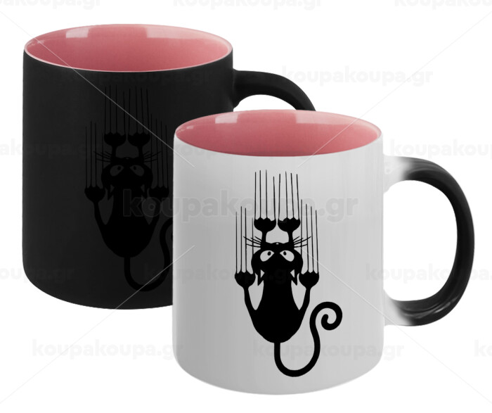 Cat scratching, Κούπα Μαγική εσωτερικό ΡΟΖ, κεραμική 330ml που αλλάζει χρώμα με το ζεστό ρόφημα