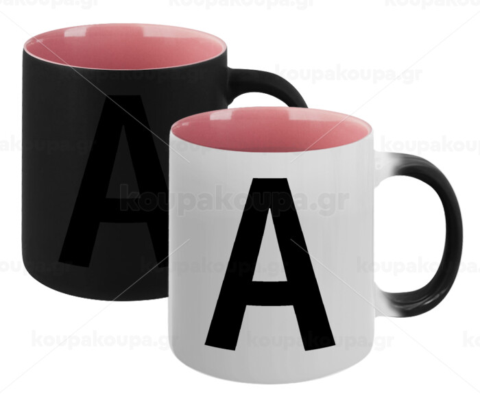 Μονόγραμμα , Κούπα Μαγική εσωτερικό ΡΟΖ, κεραμική 330ml που αλλάζει χρώμα με το ζεστό ρόφημα