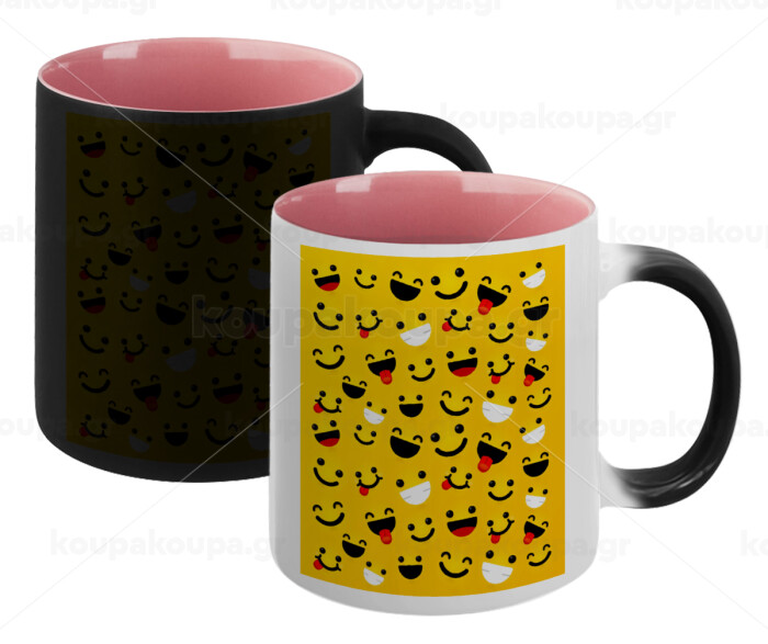 Smilies , Κούπα Μαγική εσωτερικό ΡΟΖ, κεραμική 330ml που αλλάζει χρώμα με το ζεστό ρόφημα