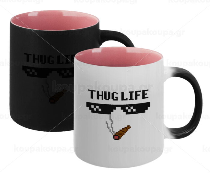 thug life, Κούπα Μαγική εσωτερικό ΡΟΖ, κεραμική 330ml που αλλάζει χρώμα με το ζεστό ρόφημα