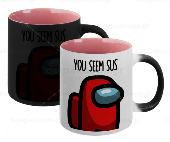 Among US, you seem sus, Κούπα Μαγική εσωτερικό ΡΟΖ, κεραμική 330ml που αλλάζει χρώμα με το ζεστό ρόφημα