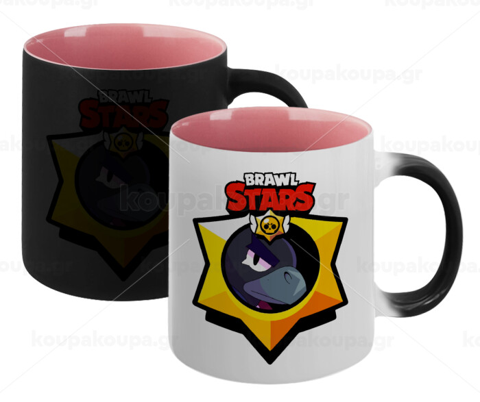 Brawl Stars Crow, Κούπα Μαγική εσωτερικό ΡΟΖ, κεραμική 330ml που αλλάζει χρώμα με το ζεστό ρόφημα