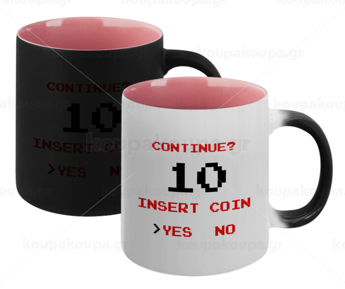 Continue? YES - NO, Κούπα Μαγική εσωτερικό ΡΟΖ, κεραμική 330ml που αλλάζει χρώμα με το ζεστό ρόφημα