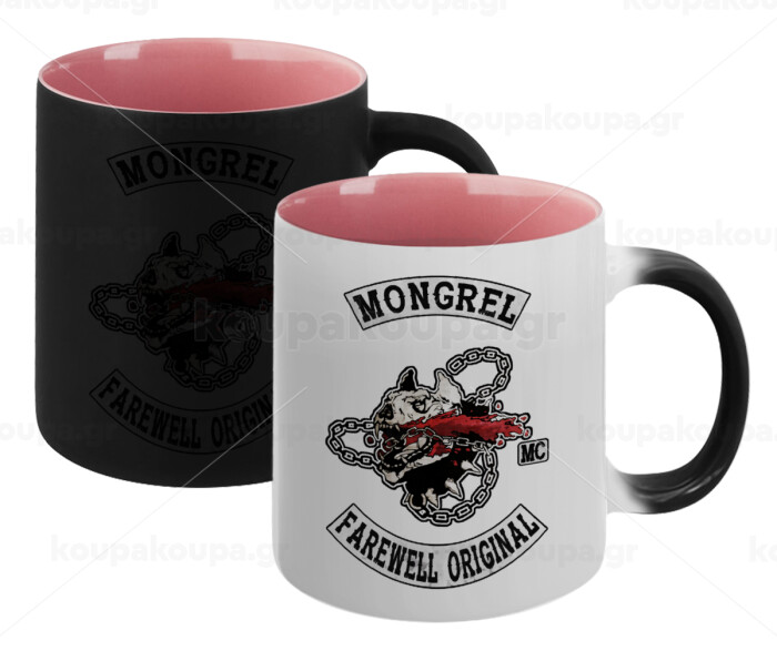 Day's Gone, mongrel farewell original, Κούπα Μαγική εσωτερικό ΡΟΖ, κεραμική 330ml που αλλάζει χρώμα με το ζεστό ρόφημα