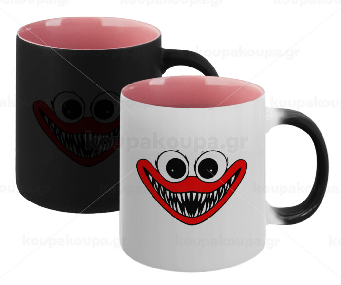 Huggy wuggy, Κούπα Μαγική εσωτερικό ΡΟΖ, κεραμική 330ml που αλλάζει χρώμα με το ζεστό ρόφημα