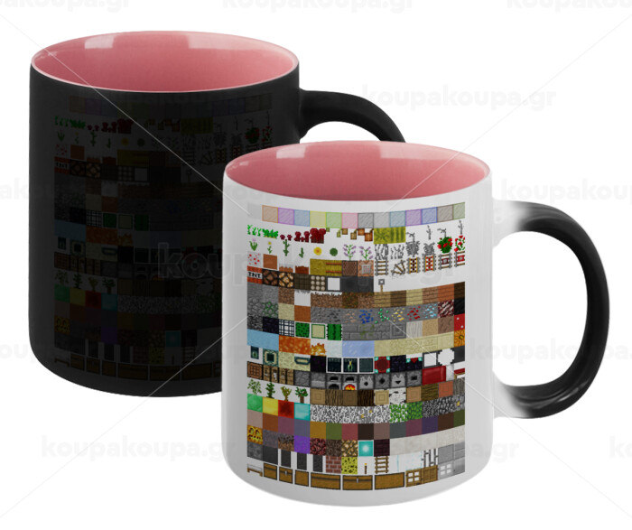 Minecraft blocks, Κούπα Μαγική εσωτερικό ΡΟΖ, κεραμική 330ml που αλλάζει χρώμα με το ζεστό ρόφημα