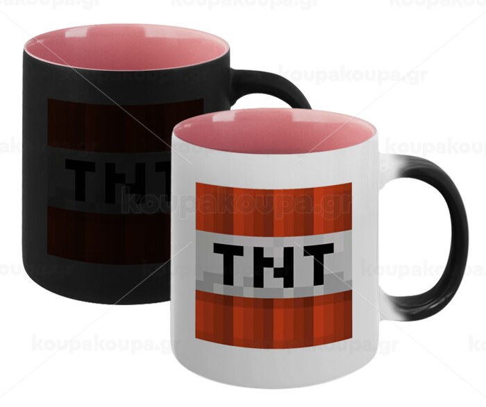 Minecraft TNT, Κούπα Μαγική εσωτερικό ΡΟΖ, κεραμική 330ml που αλλάζει χρώμα με το ζεστό ρόφημα