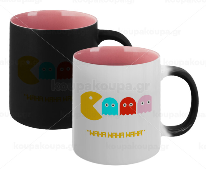 Pacman waka waka waka, Κούπα Μαγική εσωτερικό ΡΟΖ, κεραμική 330ml που αλλάζει χρώμα με το ζεστό ρόφημα
