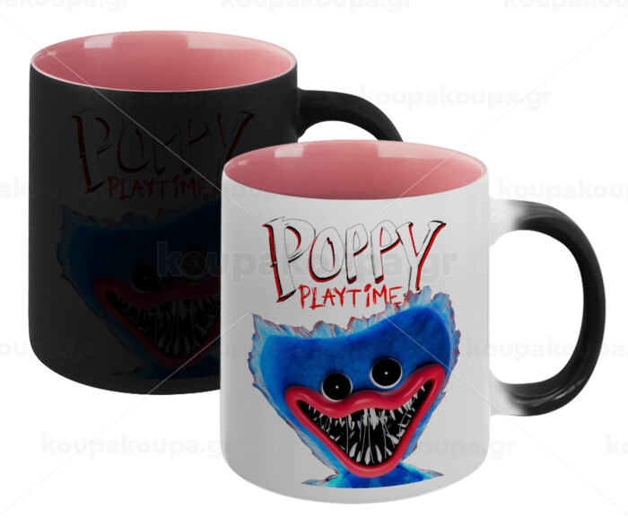 Poppy Playtime Huggy wuggy, Κούπα Μαγική εσωτερικό ΡΟΖ, κεραμική 330ml που αλλάζει χρώμα με το ζεστό ρόφημα