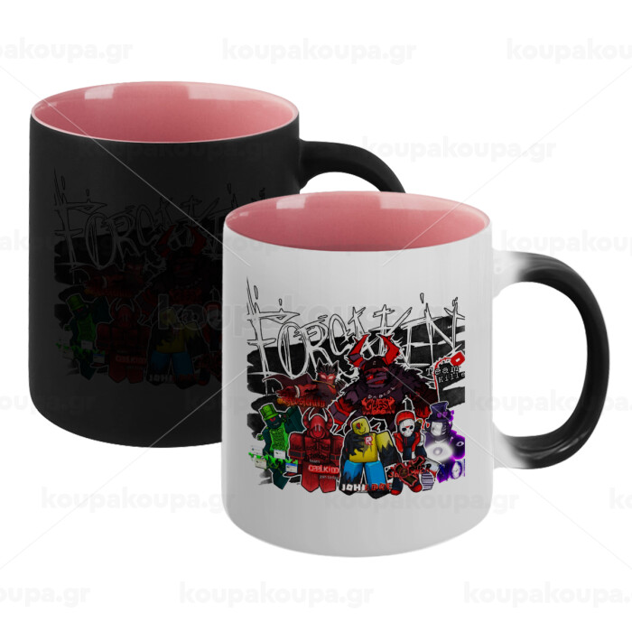 Roblox Forsaken, Κούπα Μαγική εσωτερικό ΡΟΖ, κεραμική 330ml που αλλάζει χρώμα με το ζεστό ρόφημα