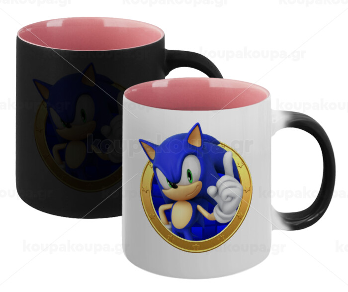 Sonic the hedgehog, Κούπα Μαγική εσωτερικό ΡΟΖ, κεραμική 330ml που αλλάζει χρώμα με το ζεστό ρόφημα