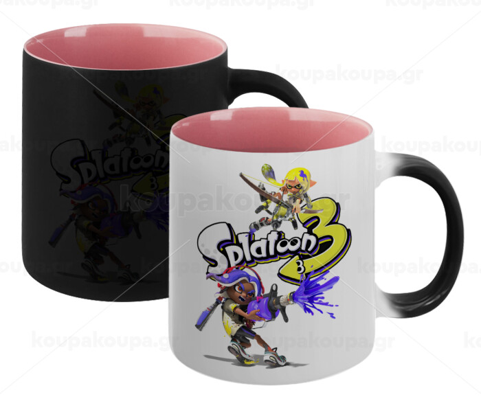 Splatoon 3, Κούπα Μαγική εσωτερικό ΡΟΖ, κεραμική 330ml που αλλάζει χρώμα με το ζεστό ρόφημα