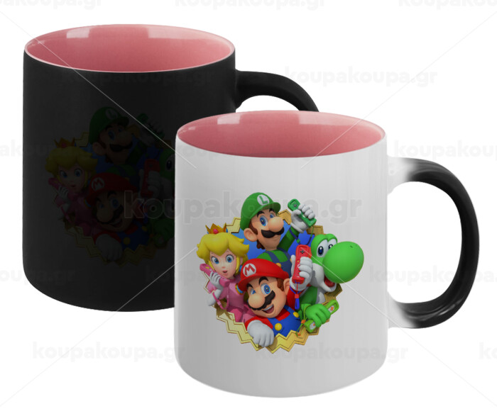 Super mario and Friends, Κούπα Μαγική εσωτερικό ΡΟΖ, κεραμική 330ml που αλλάζει χρώμα με το ζεστό ρόφημα