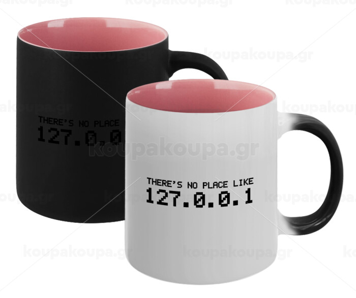 there's no place like 127.0.0.1, Κούπα Μαγική εσωτερικό ΡΟΖ, κεραμική 330ml που αλλάζει χρώμα με το ζεστό ρόφημα