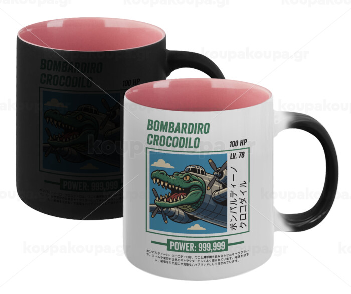Bombardiro Crocodilo, Κούπα Μαγική εσωτερικό ΡΟΖ, κεραμική 330ml που αλλάζει χρώμα με το ζεστό ρόφημα
