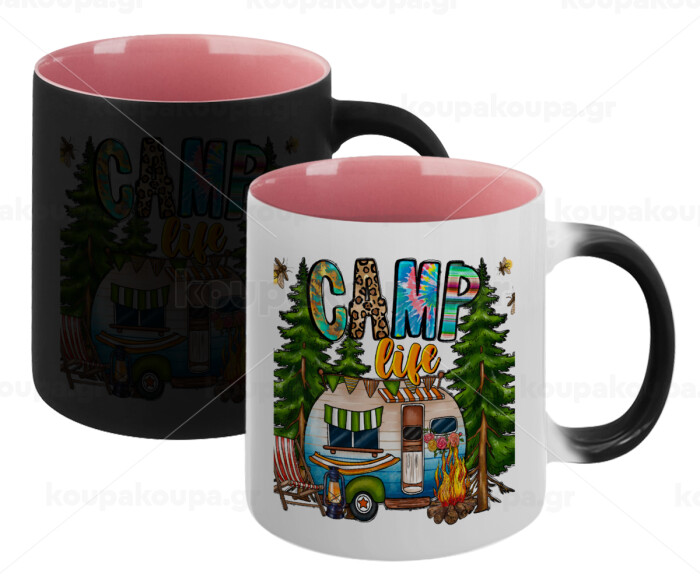 Camp Life, Κούπα Μαγική εσωτερικό ΡΟΖ, κεραμική 330ml που αλλάζει χρώμα με το ζεστό ρόφημα