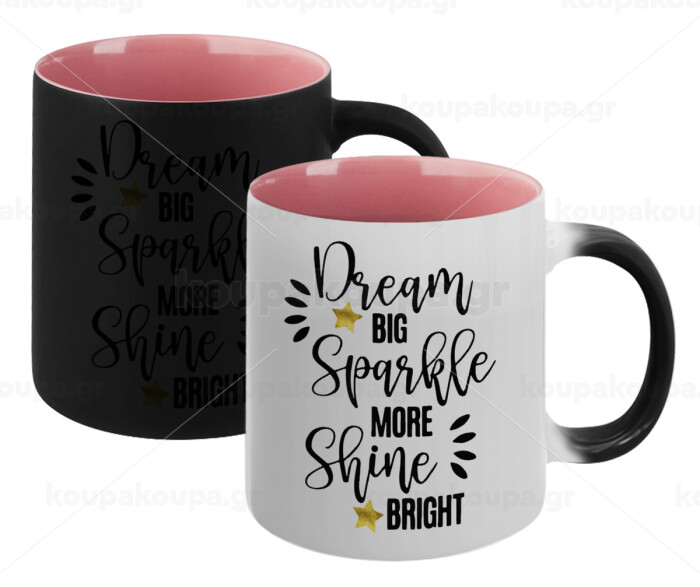 Dream big, Sparkle more, Shine bright, Κούπα Μαγική εσωτερικό ΡΟΖ, κεραμική 330ml που αλλάζει χρώμα με το ζεστό ρόφημα