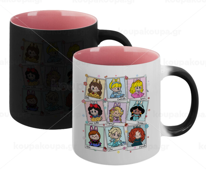 Labubu characters, Κούπα Μαγική εσωτερικό ΡΟΖ, κεραμική 330ml που αλλάζει χρώμα με το ζεστό ρόφημα
