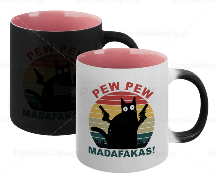 PEW PEW madafakas, Κούπα Μαγική εσωτερικό ΡΟΖ, κεραμική 330ml που αλλάζει χρώμα με το ζεστό ρόφημα