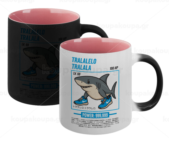 Tralalero Tralala, Κούπα Μαγική εσωτερικό ΡΟΖ, κεραμική 330ml που αλλάζει χρώμα με το ζεστό ρόφημα