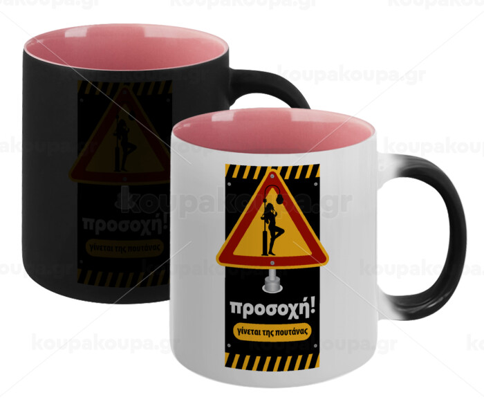 Προσοχή Γίνεται της πουτ.νας, Κούπα Μαγική εσωτερικό ΡΟΖ, κεραμική 330ml που αλλάζει χρώμα με το ζεστό ρόφημα