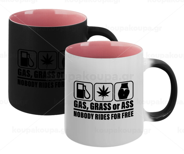 Gas, Grass or Ass, Κούπα Μαγική εσωτερικό ΡΟΖ, κεραμική 330ml που αλλάζει χρώμα με το ζεστό ρόφημα