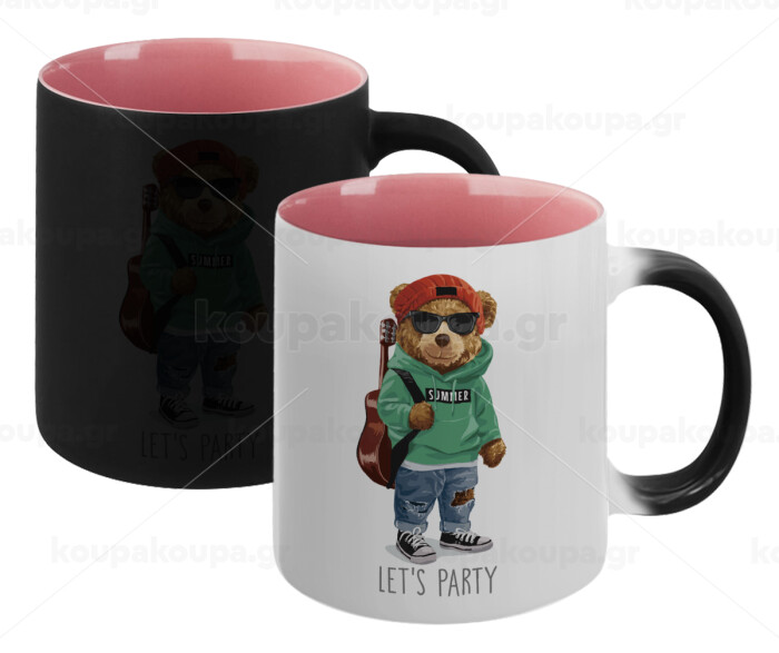 Let's Party Bear, Κούπα Μαγική εσωτερικό ΡΟΖ, κεραμική 330ml που αλλάζει χρώμα με το ζεστό ρόφημα