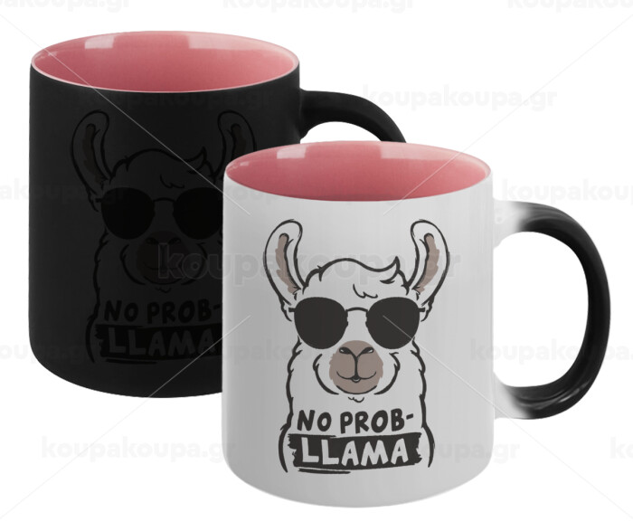 No Prob Llama, Κούπα Μαγική εσωτερικό ΡΟΖ, κεραμική 330ml που αλλάζει χρώμα με το ζεστό ρόφημα