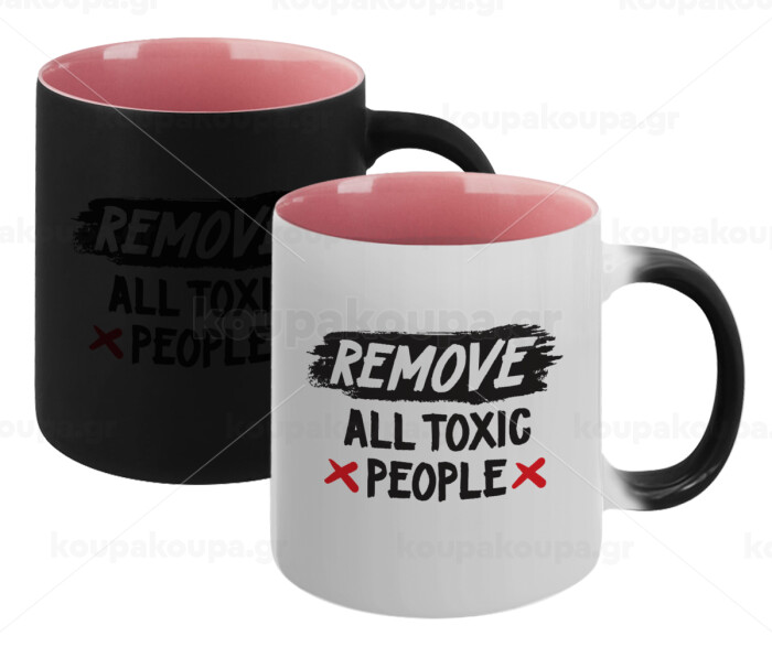 Remove all toxic people, Κούπα Μαγική εσωτερικό ΡΟΖ, κεραμική 330ml που αλλάζει χρώμα με το ζεστό ρόφημα