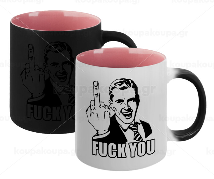 The finger, Κούπα Μαγική εσωτερικό ΡΟΖ, κεραμική 330ml που αλλάζει χρώμα με το ζεστό ρόφημα