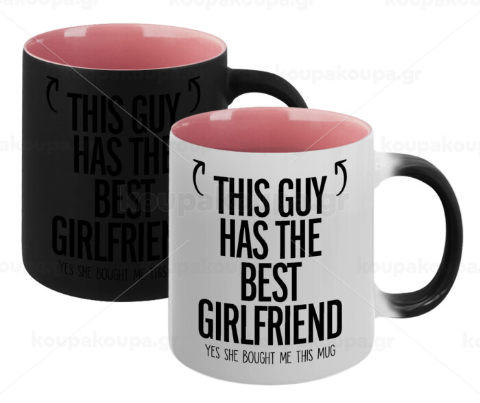 This guy has the best Girlfriend, Κούπα Μαγική εσωτερικό ΡΟΖ, κεραμική 330ml που αλλάζει χρώμα με το ζεστό ρόφημα