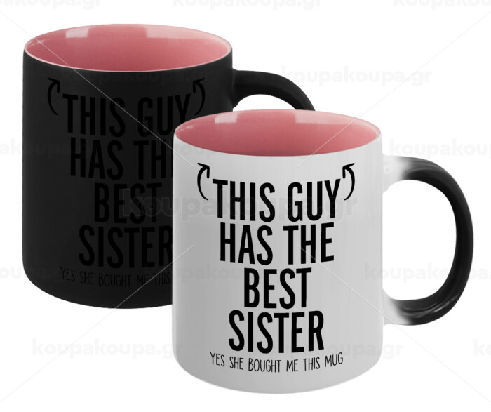 This guy has the best Sister, Κούπα Μαγική εσωτερικό ΡΟΖ, κεραμική 330ml που αλλάζει χρώμα με το ζεστό ρόφημα