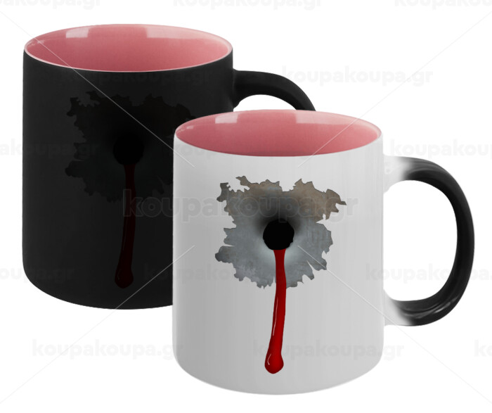 Bullet holes, Κούπα Μαγική εσωτερικό ΡΟΖ, κεραμική 330ml που αλλάζει χρώμα με το ζεστό ρόφημα