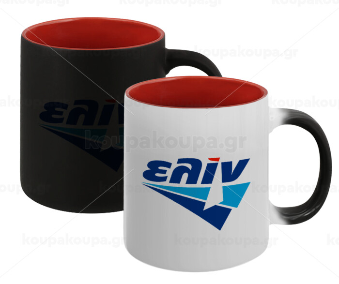 Πρατήριο καυσίμων ΕΛΙΝ, Κούπα Μαγική εσωτερικό κόκκινο, κεραμική, 330ml που αλλάζει χρώμα με το ζεστό ρόφημα