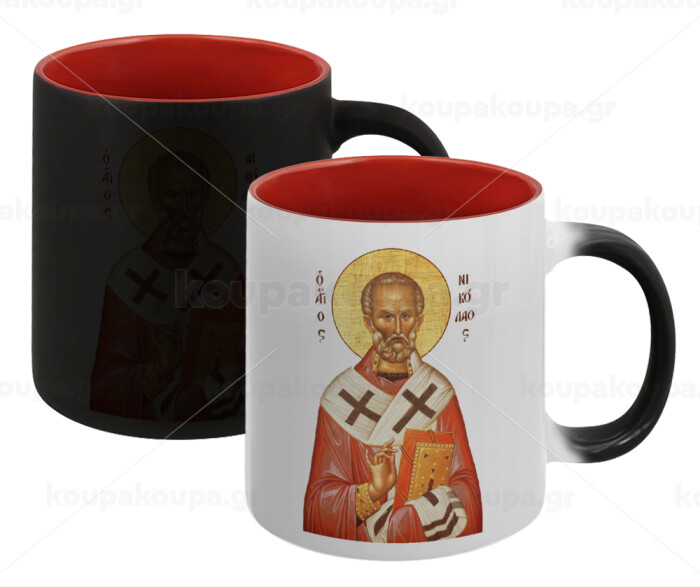 Saint Nicholas orthodox , Κούπα Μαγική εσωτερικό κόκκινο, κεραμική, 330ml που αλλάζει χρώμα με το ζεστό ρόφημα