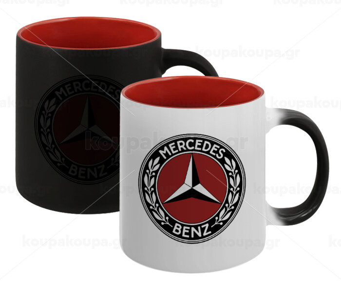 Mercedes vintage, Κούπα Μαγική εσωτερικό κόκκινο, κεραμική, 330ml που αλλάζει χρώμα με το ζεστό ρόφημα