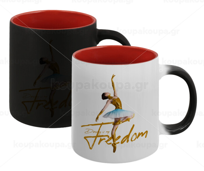Gold Dancer, Κούπα Μαγική εσωτερικό κόκκινο, κεραμική, 330ml που αλλάζει χρώμα με το ζεστό ρόφημα