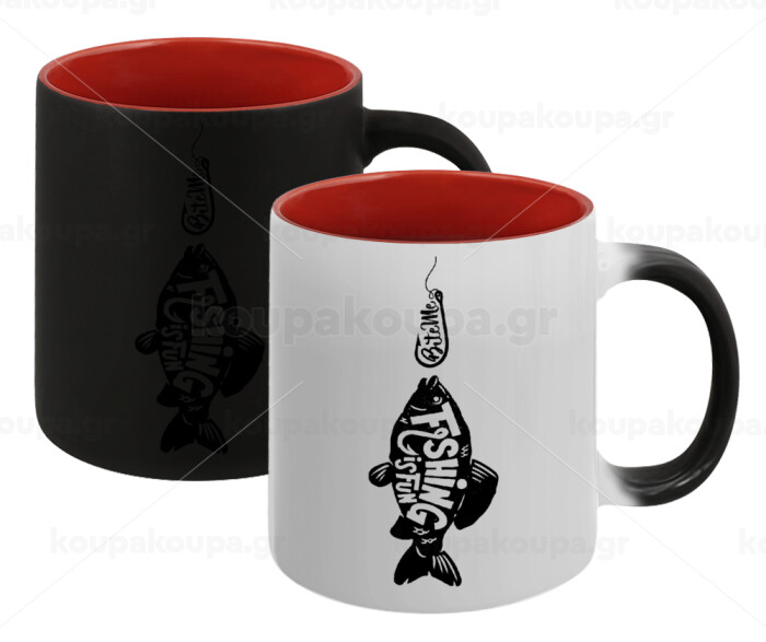 Fishing is fun, Κούπα Μαγική εσωτερικό κόκκινο, κεραμική, 330ml που αλλάζει χρώμα με το ζεστό ρόφημα