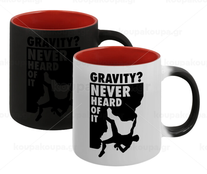 Gravity? Never heard of that!, Κούπα Μαγική εσωτερικό κόκκινο, κεραμική, 330ml που αλλάζει χρώμα με το ζεστό ρόφημα