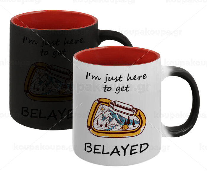 I'm just here to get Belayed, Κούπα Μαγική εσωτερικό κόκκινο, κεραμική, 330ml που αλλάζει χρώμα με το ζεστό ρόφημα