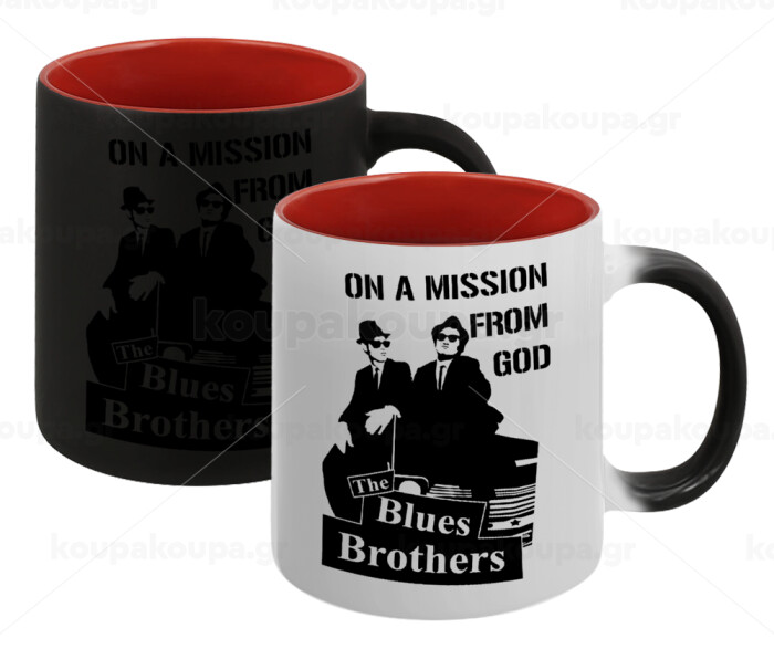 Blues brothers on a mission from God, Κούπα Μαγική εσωτερικό κόκκινο, κεραμική, 330ml που αλλάζει χρώμα με το ζεστό ρόφημα