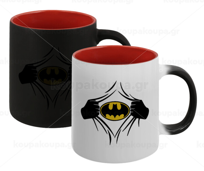 Hero batman, Κούπα Μαγική εσωτερικό κόκκινο, κεραμική, 330ml που αλλάζει χρώμα με το ζεστό ρόφημα