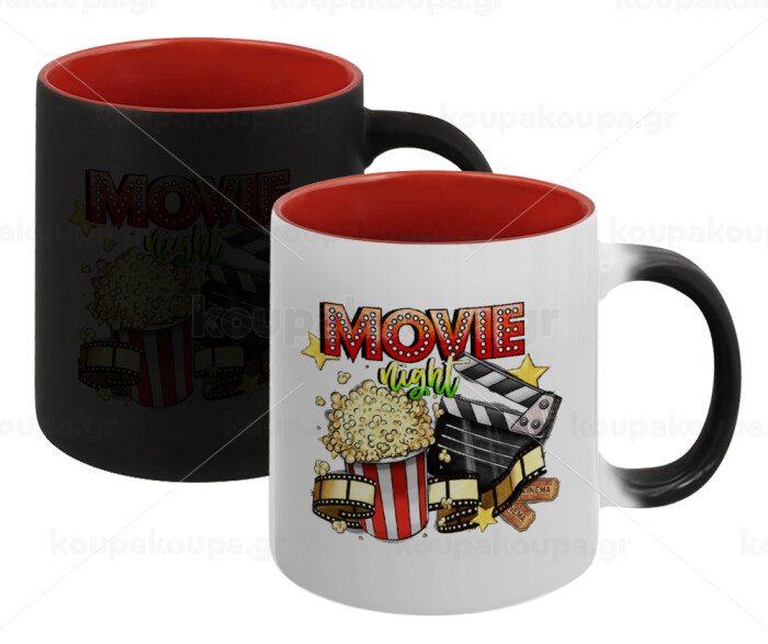 Movie night, Κούπα Μαγική εσωτερικό κόκκινο, κεραμική, 330ml που αλλάζει χρώμα με το ζεστό ρόφημα