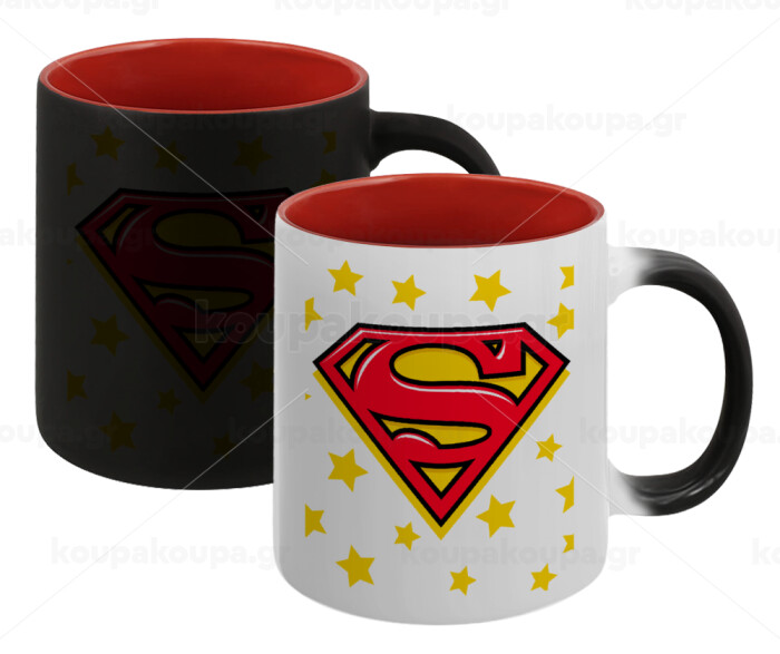 Superman Blue, Κούπα Μαγική εσωτερικό κόκκινο, κεραμική, 330ml που αλλάζει χρώμα με το ζεστό ρόφημα