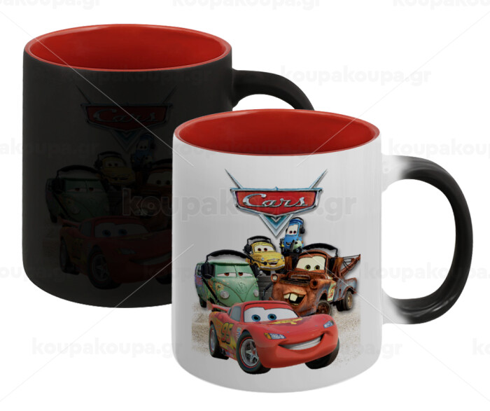 Αυτοκίνητα, Κούπα Μαγική εσωτερικό κόκκινο, κεραμική, 330ml που αλλάζει χρώμα με το ζεστό ρόφημα