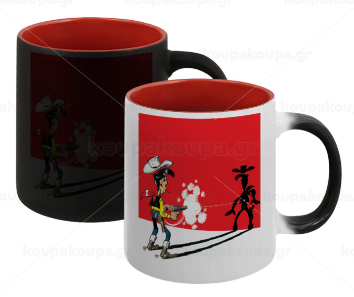 Lucky Luke shadows, Κούπα Μαγική εσωτερικό κόκκινο, κεραμική, 330ml που αλλάζει χρώμα με το ζεστό ρόφημα
