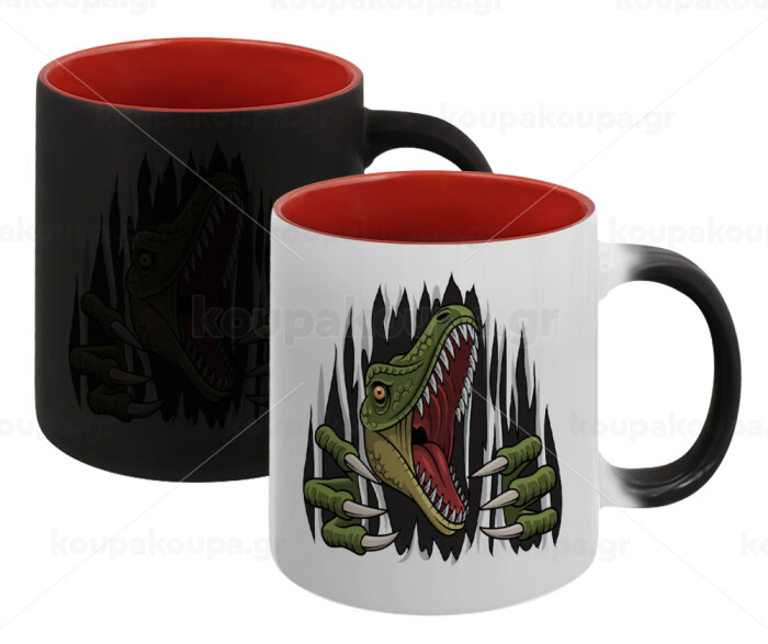 Dinosaur scratch, Κούπα Μαγική εσωτερικό κόκκινο, κεραμική, 330ml που αλλάζει χρώμα με το ζεστό ρόφημα